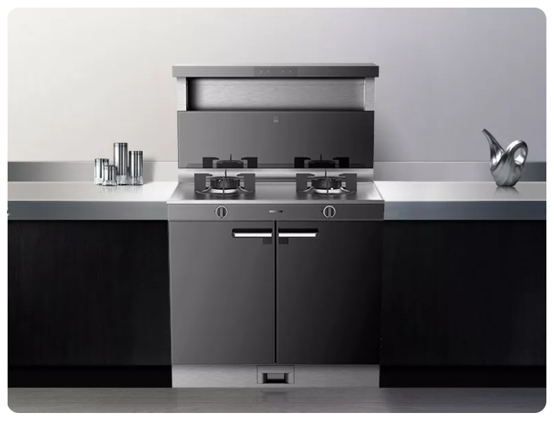 作為新一代廚電產品,集成灶是對傳統廚房的革新,憑借超高油煙吸凈率,為用戶帶來滿足開放式廚房的無煙生態環境而大受歡迎。同時,集成灶破除傳統三件套分離占地的桎梏,集成油煙機、燃氣灶、儲物柜,不僅在視覺上更加整體統一,同時增大儲物功能,提高了廚房空間利用率。