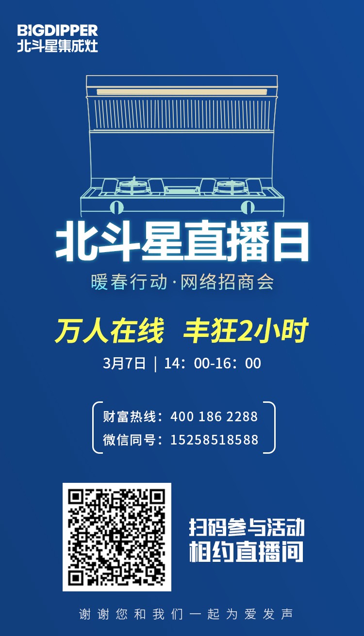 暖春行動丨北斗星集成灶3月線上招商會邀您共迎財富春天!