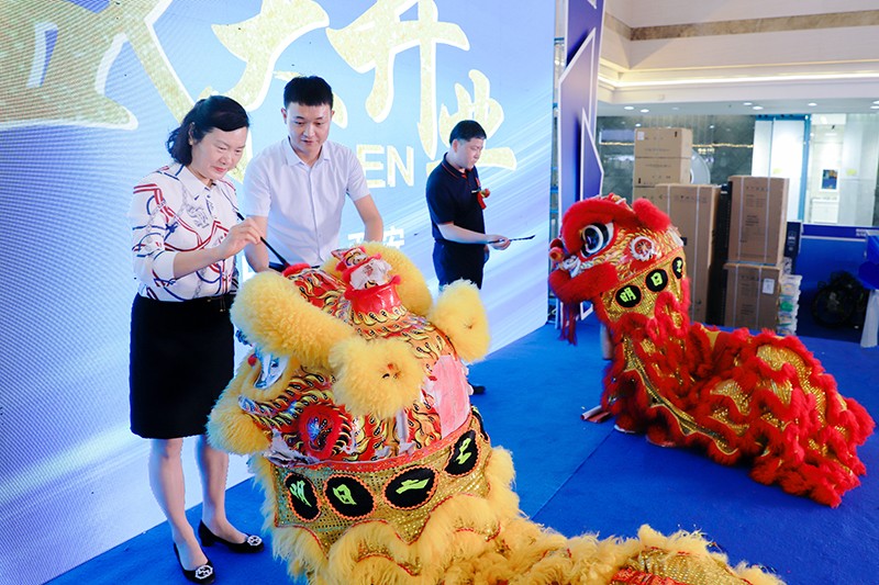 隨著鏗鏘有力的鑼鼓聲陣陣響起,一頭頭祥獅在場上翻騰起舞,將現場氣氛推向高潮!現場嘉賓分別為舞獅點睛,舞獅采青,生龍活虎,財源廣進,北斗星西安大明宮旗艦店開業大吉!