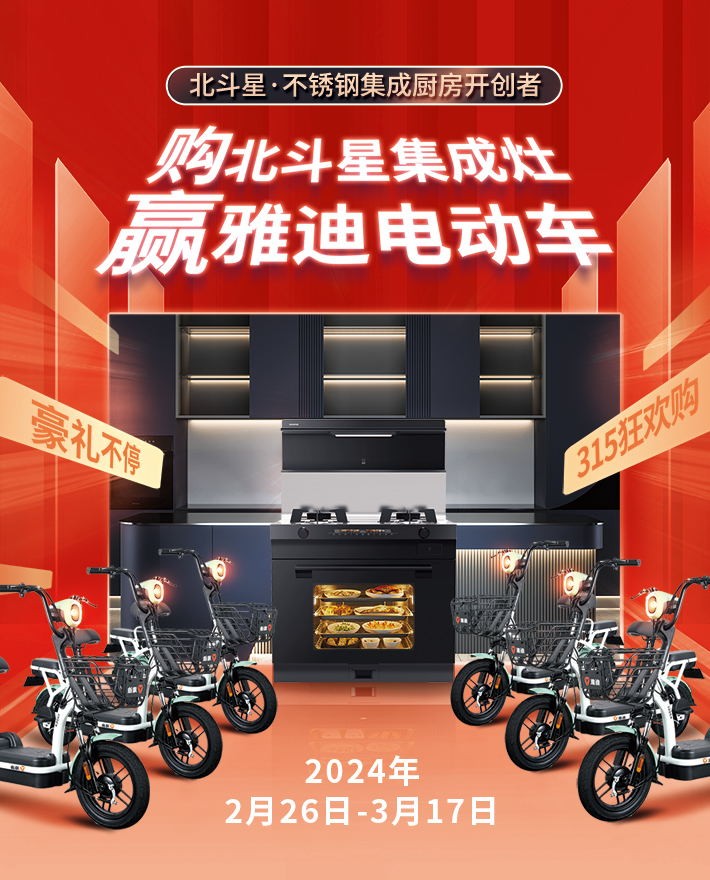 315狂歡購來襲!購北斗星集成灶,贏雅迪電動車!