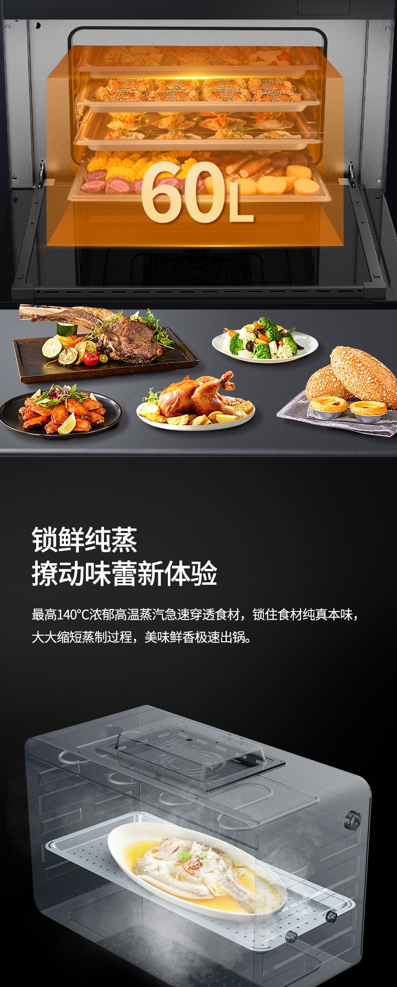 60L蒸烤內(nèi)膽,一聲令下美味到家